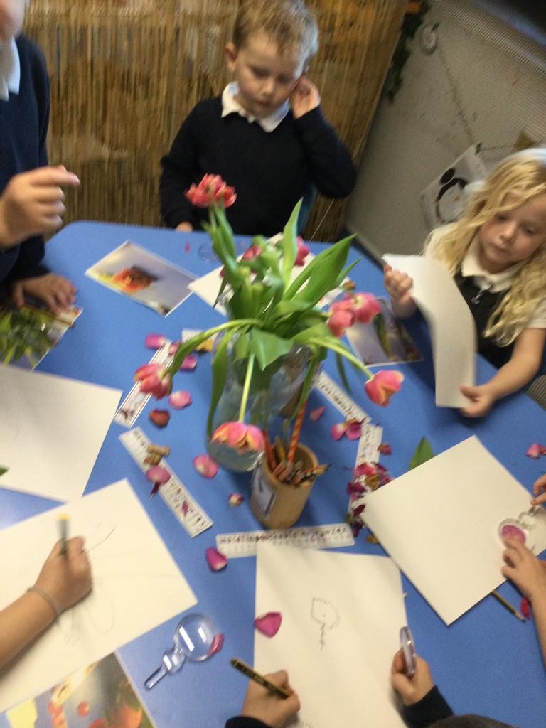 In art, we have started looking at using our small and large movements to draw observational drawings. The children loved trying to draw parts of Tulips and some managed to draw the vase full of tulips. To achieve this, we looked carefully, closely and looked for detail.