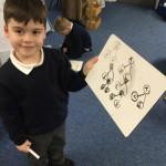 In maths, we have been forming numbers to 5 and also beginning to write addition and subtraction facts within 5. We work on 5 for a period of time as these are numbers the children are confident with whilst we introduce new concepts.