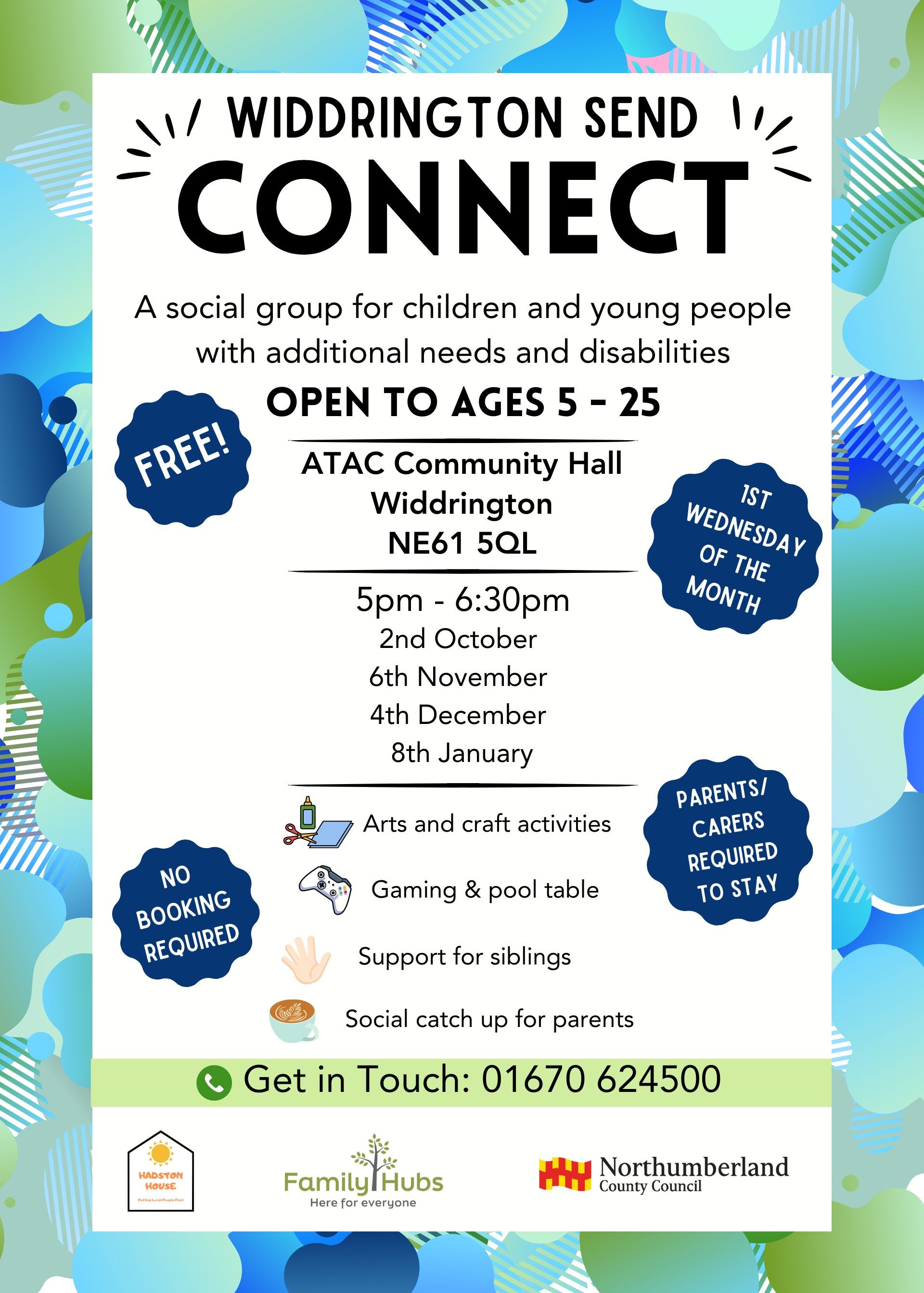 There is a monthly social group for children with additional needs and disabilities available in Widdrington. See the link below for more detailed information.