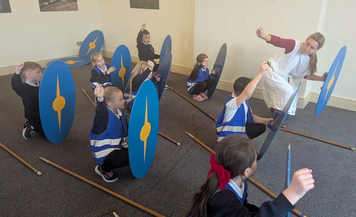 Our Romans topic had a big boost last week. On Monday, we had a trip to visit Segedunum Roman Fort in Wallsend. What a great day! We saw amazing aerial views of the fort, explored the site so we could picture the Romans who lived there and learnt lots at the museum exhibition. In the afternoon, we took part in excellent workshops where we could handle Roman objects, and imagined that we were training to become Roman soldiers.